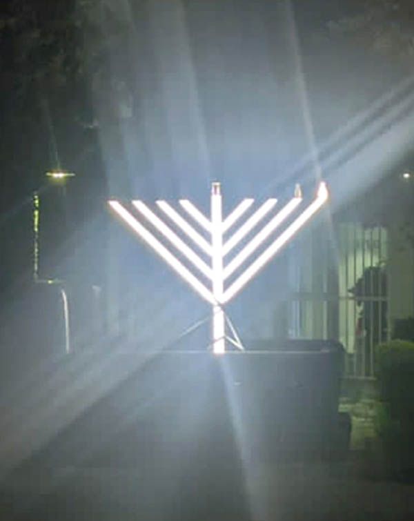 The LED Sign can be attached and Lit up on BOTH sides of the Menorah! (so if you want it to be seen on both sides, please get two) - Fire Extension and TiKi Torch Canister available for a beautiful and bright fire! Our Custom piece Screws strongly and securely onto the Menorah, and can easily be switched between LED & Fire.
