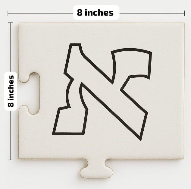 Each child receives a professionally boxed puzzle with 32 jumbo pieces (8" square each). As you teach each Hebrew letter, your students will decorate their puzzle pieces with textured materials that match the letter’s sound and character. By the end of the year, they’ve built a giant 64” x 32” Aleph Beis puzzle — colorful, sensory, and deeply personal — ready to bring home and cherish for years.