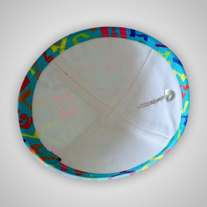 Each yarmulke features a bright and engaging Aleph Beis (Aleph Bet) design that introduces children to the beauty of the Hebrew alphabet in a fun and approachable way. Made from a soft yet durable cotton-polyester blend, these yarmulkas are comfortable for all-day wear and built to last. Every yarmulke comes with a clip already pre-inserted so it stays securely in placeâeven for active kids on the go.
