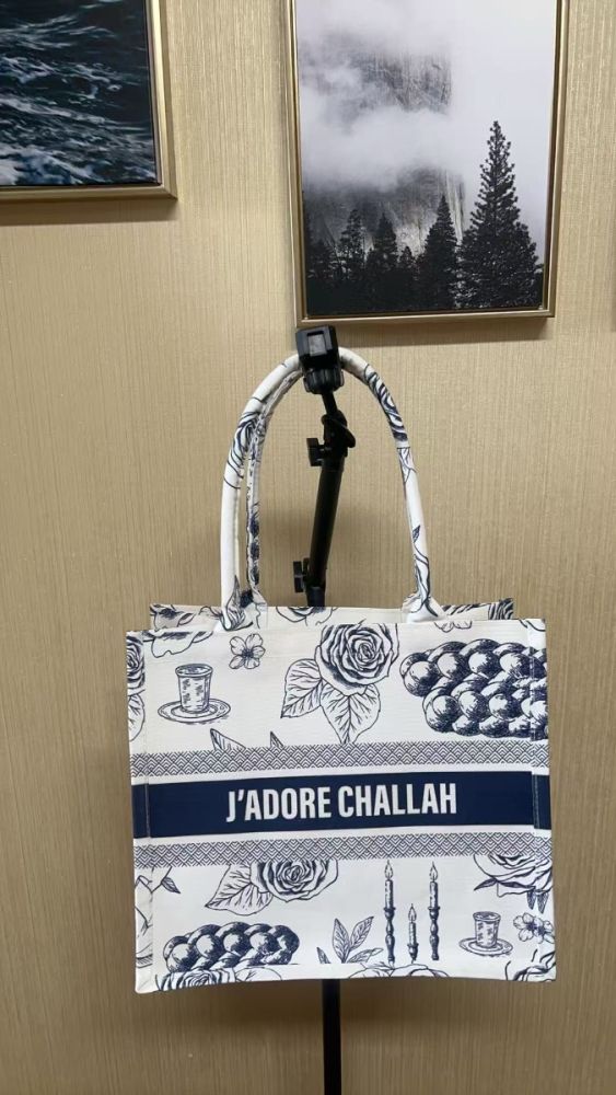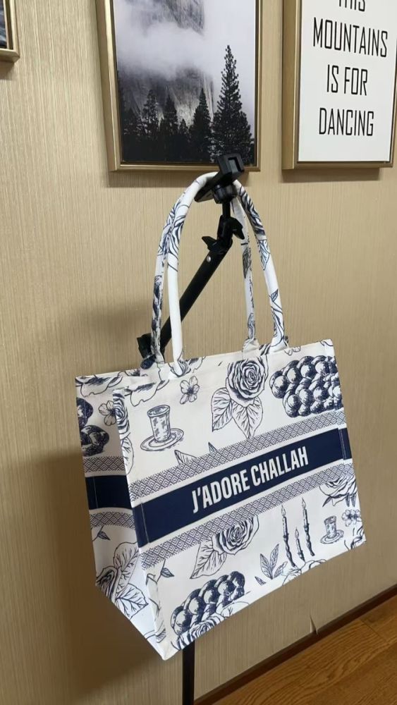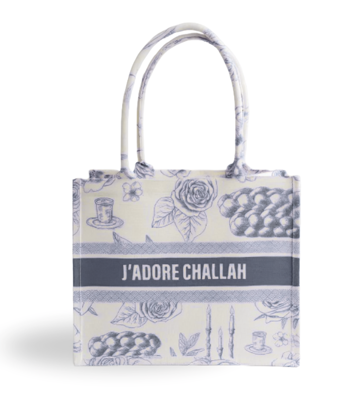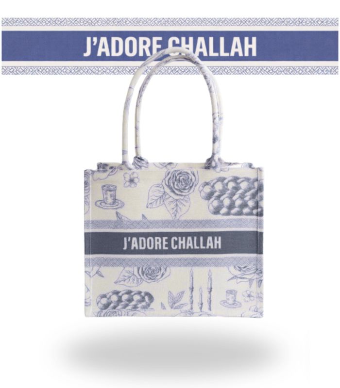 Blue - J'adore Challah Canvas Tote Bag - Ships from CA