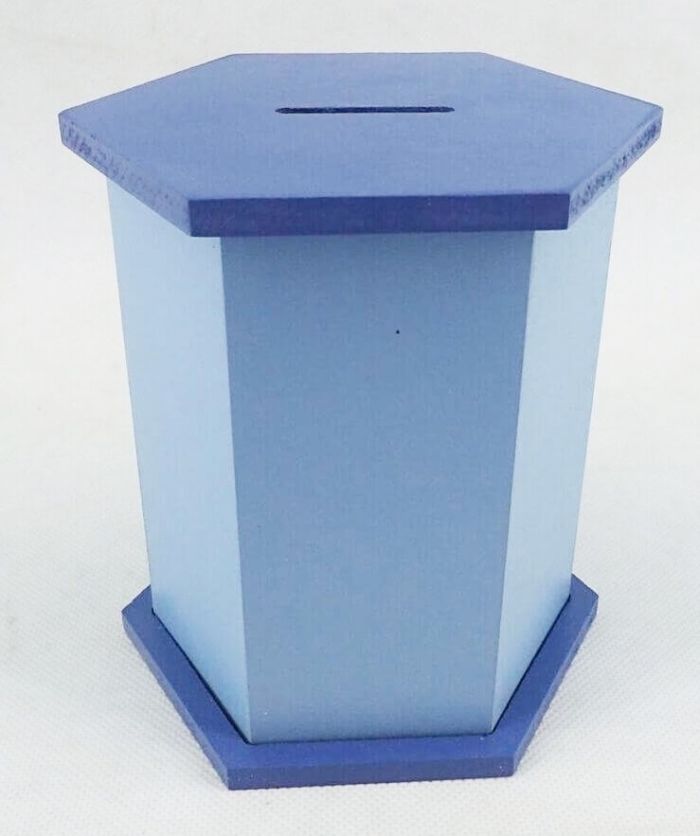 This beautifully crafted wooden Tzedakah box—also called a Pushka—is designed to inspire children to give, take ownership of their mitzvos, and proudly participate in the Jewish value of Tzedakah from a young age. With its hexagon shape and smooth painted finish, this box is both practical and elegant, perfect for home, classroom, or shul use.