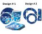Design #2 ā Chanukah Dreidel (Blue mosaic with gold & silver dreidels):