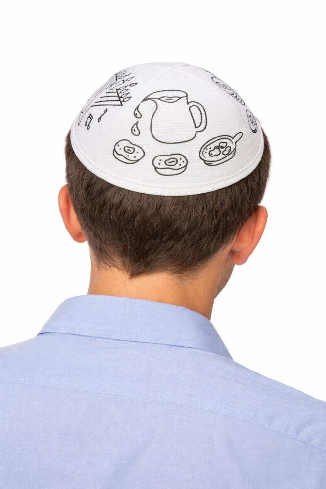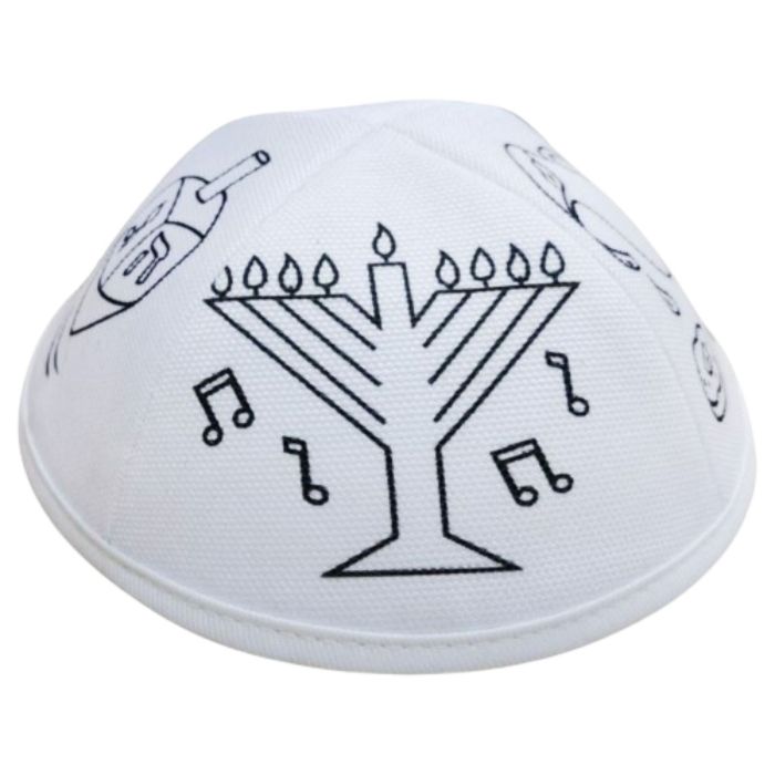 Bring extra joy to your Chanukah celebration with our Chanukah Yarmulka β a fun and meaningful way to share Jewish pride. This cotton yarmulka features printed Chanukah outlines that look great as-is, or can be personalized with fabric markers or tie-dye for a creative touch.