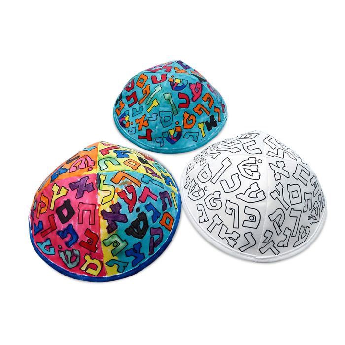 Spark creativity and Jewish pride with our Color or Tie-Dye Your Own Alef Beis Yarmulkas—a meaningful, hands-on activity that transforms a simple yarmulka into a personalized keepsake kids will love to wear.