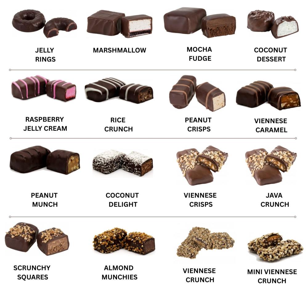 Chocolate varieties are chosen from our collection, which may include: