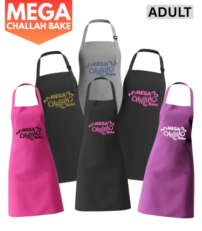 These aprons are cotton, and are pre-printed with the "Mega Challah Bake: logo.