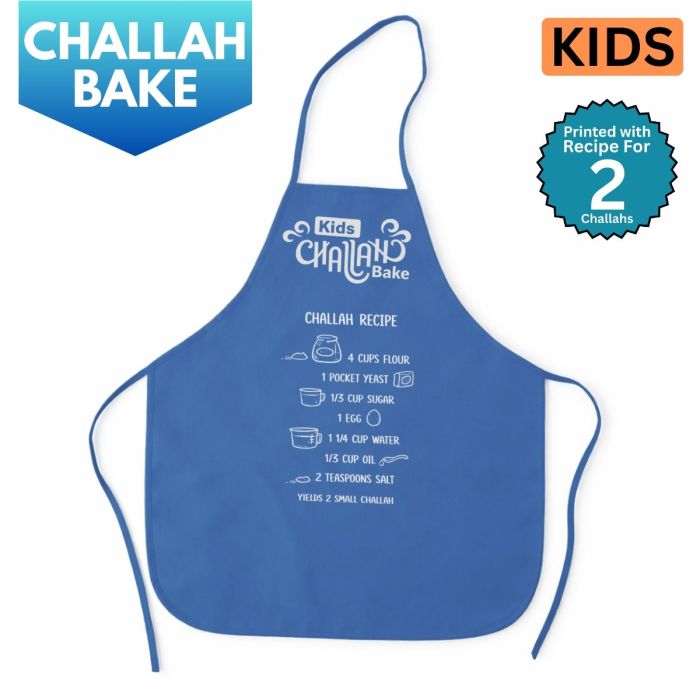 » Printed with Recipe For 2 ChallahsOur Nonwoven Kids Challah Bake Aprons with Recipe are designed to make children’s challah bakes fun, festive, and mess-free.