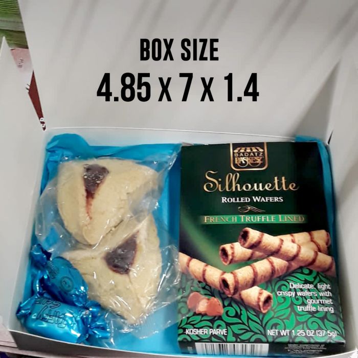 + 2.45Â Option 6:Â Silhouette Chocolate Rolled Wafers, 2 individually wrapped greens hamantashen, 4 Wrapped Mini Swiss Chocolate Bars