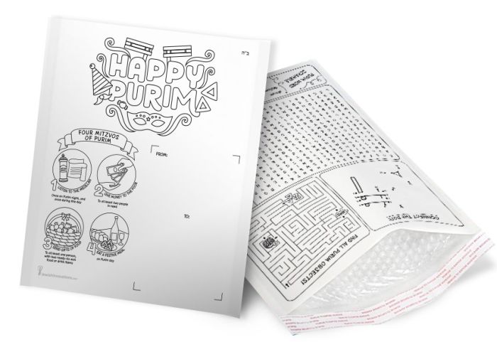 Family Purim Activity Bubble Envelope - Shaloch Manos - MAIL OR GIVE! Filled or Empty