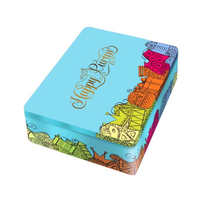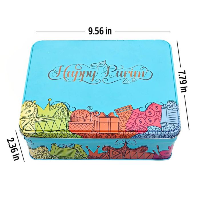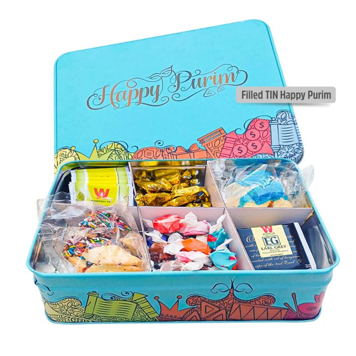 Filled Large Tin Happy Purim Tea Box - Simple Option
