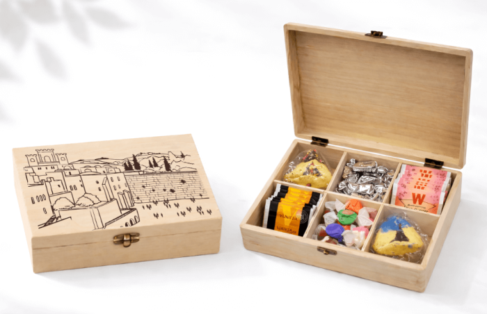 Filled Wooden Yerushalayim Tea Box -Elegant Option 1 (Option to ship individually to recipient)