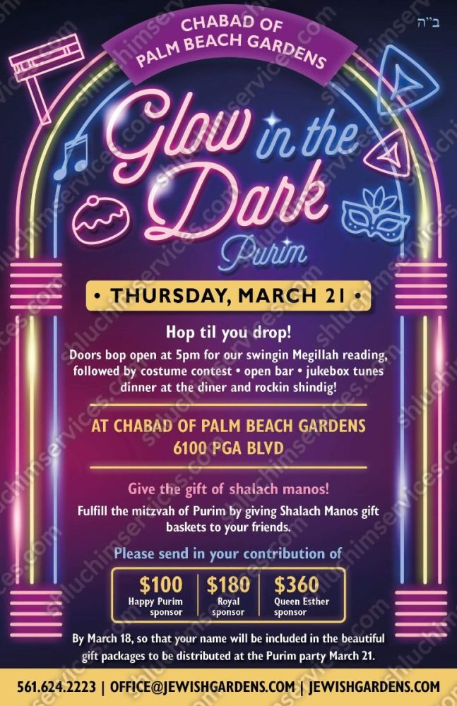 Customize the Glow in the Dark Purim Flyer Design for your event