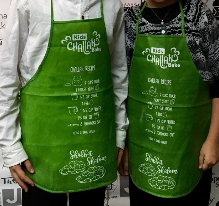 GREEN Nonwoven KIDS Challah Bake Aprons w Recipe for 2 challahs
