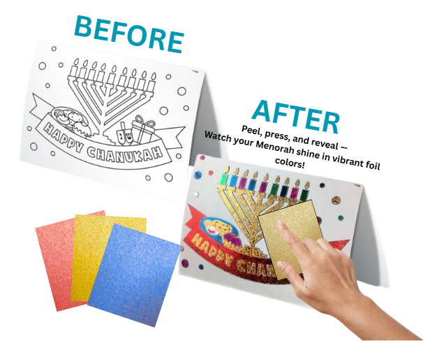 ➤➤➤ Add sparkle, creativity, and meaning to your next Chanukah celebration — order the Happy Chanukah Foil Art Greeting Card Craft Kit today and let every child, teen, and senior share the light of Chanukah in their own creative way!