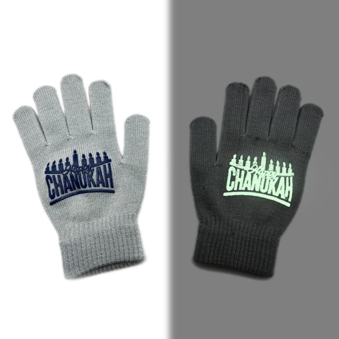 Happy Chanukah Glow in the Dark Glove - Navy, Grey