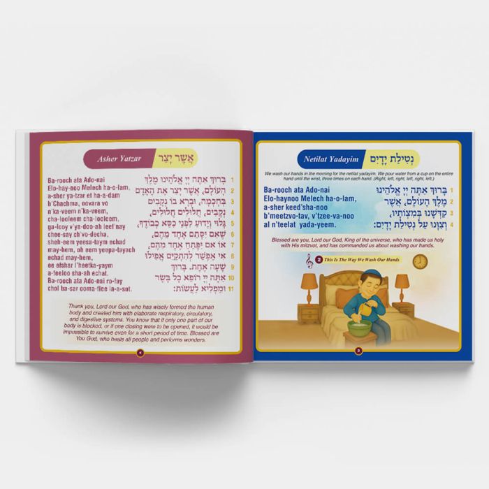 Every prayer is paired with bright, child-friendly artwork that helps children connect with the words, stay engaged, and understand the meaning of each tefillah.