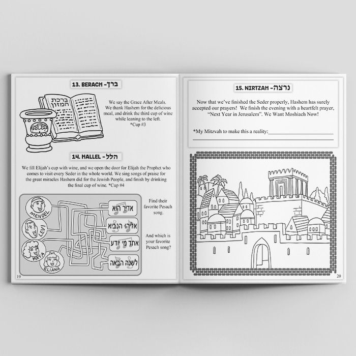 Kids Pesach Haggadah Coloring & Activity Book - 24 pages (Good for Hebrew School)