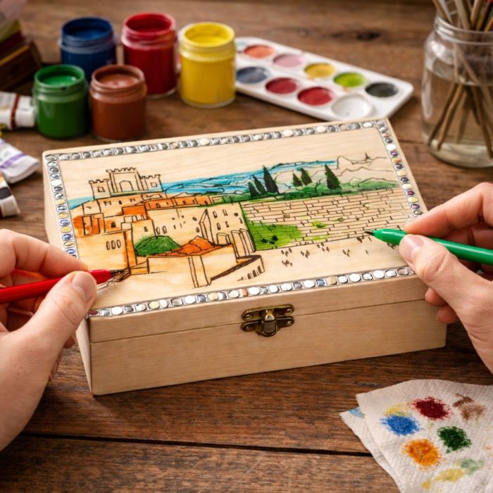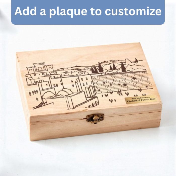 Large Wooden Purim Tea Box – Jerusalem & Western Wall Design