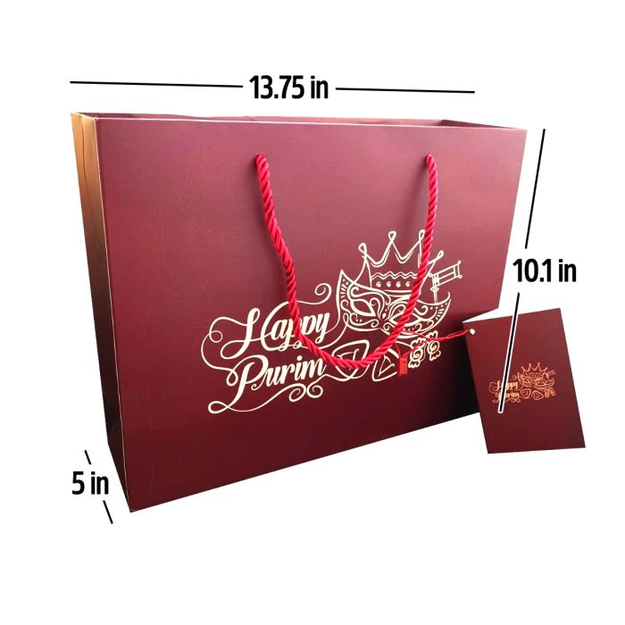 Celebrate & be merry with these beautiful jewFadz Large Purim Gift Pack! Purim is a joyous Jewish holiday that celebrates the story of Esther. Commemorate this happy occasion with these festive paper bags. Made from eco-friendly Kraft paper, these bags are sturdy and attractive. Perfect for mishloach manot gifts or treats, these bags make it easy to celebrate in style. Shop worry-free knowing that your gifts will arrive in style.