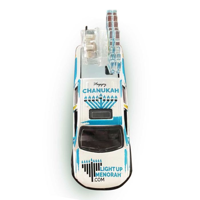 LED LIGHT UP CAR MENORAH ON PICKUP TRUCK - White / Blue