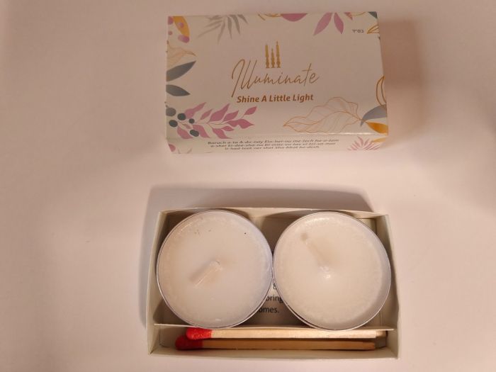 Light Blue Illuminating Neshek Candlelighting Kit includes 2 tealights and 2 matches: