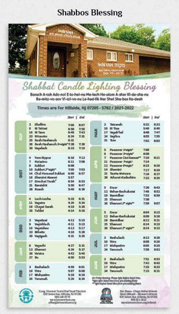 - Include zmanim (times) based on your zip code, with a proof sent for approval.