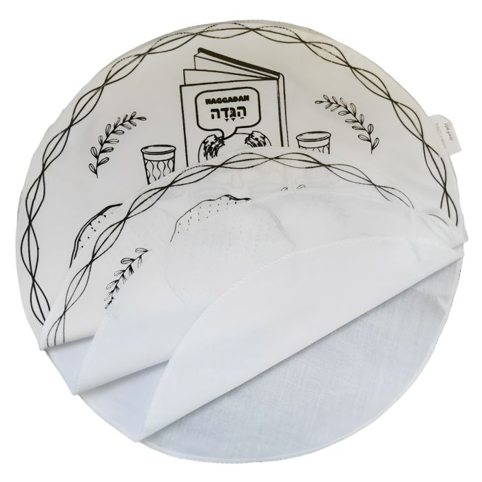 Measuring 10.75 x 10.75 inches, this round Matzah cover is crafted from a high-quality polyester-cotton blend, ensuring durability and a soft, elegant feel. The cover features three separate compartments, making it perfect for holding the three Matzot required for the Seder night.