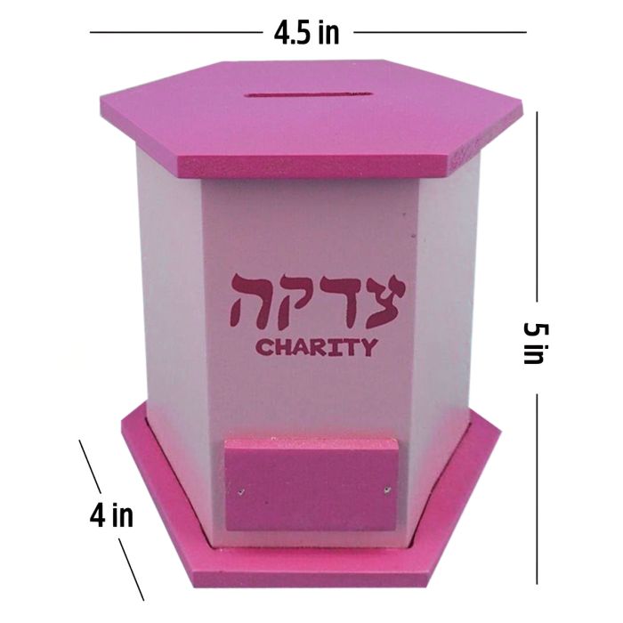 This beautifully crafted wooden Tzedakah box—also called a Pushka—is designed to inspire children to give, take ownership of their mitzvos, and proudly participate in the Jewish value of Tzedakah from a young age. With its hexagon shape and smooth painted finish, this box is both practical and elegant, perfect for home, classroom, or shul use.