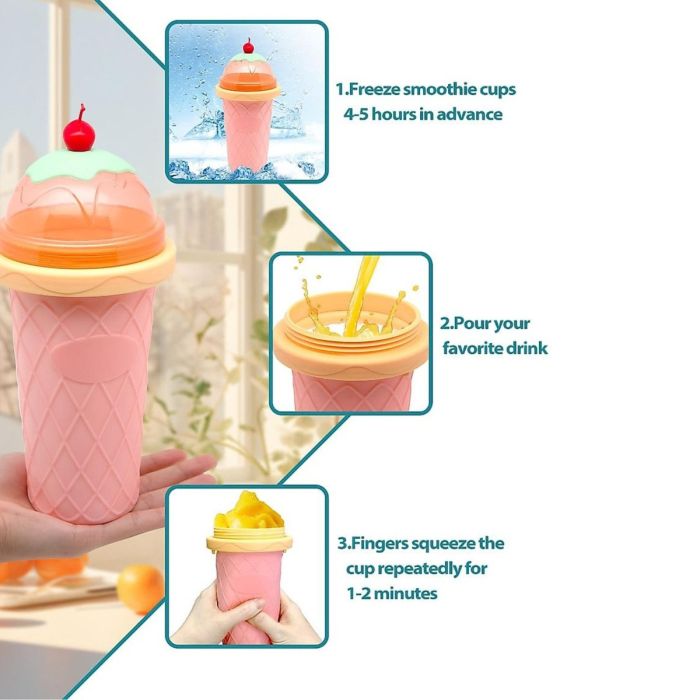 Simply freeze the cup, add milk, sugar, and your favorite flavoring, then squeeze to create a delicious frozen treat.