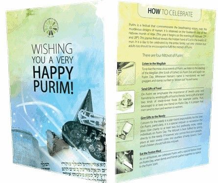 BH Beautifully designed cards, "Wishing You a Very Happy Purim" on one side.