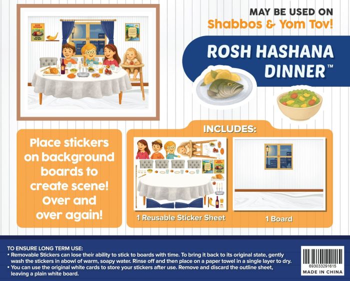 NEW!! Rosh Hashana Dinner Reusable Sticker Scene - Allowed on Shabbos and Yom Tov - Ship from the West Coast