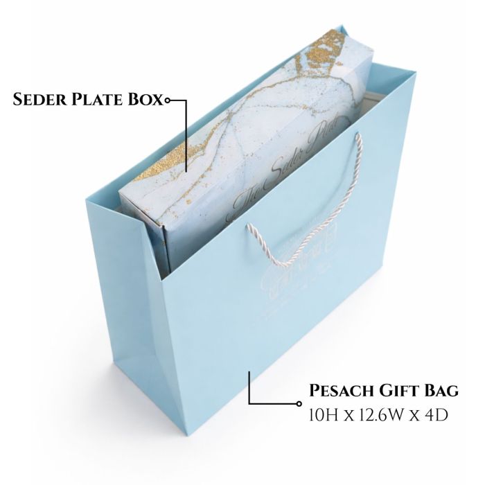 Elevate your Passover presentation with this luxurious Seder Plate Gift Box, crafted to perfectly display your silver Pesach Ka’ara (Seder plate) through six elegant window panels. With its marble and gold design and practical pizza-box-style closure, it offers the perfect blend of beauty and function—whether used for gifting, storage, or Seder-to-Go kits.