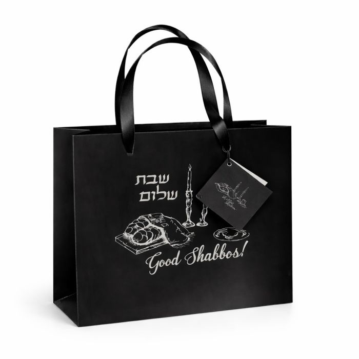 » Size: 10.4"W x 8.3"H x 3.1"DThis Premium Quality Small Shabbat Shalom Gift Bag is Perfect to celebrate Shabbat and Jewish Special events with your family and Friends. This Black Sturdy and Stylish Bag is perfect for carrying all your needs on Shabbat. It features a simple design with modern Flair making it perfect to use on special Jewish events. The beautiful design of the bag is perfect for gift giving and the sturdy handles make it easy to carry. Whether you’re looking for a unique gift or something special to take with you to synagogue, our Shabbos Bag is sure to please.