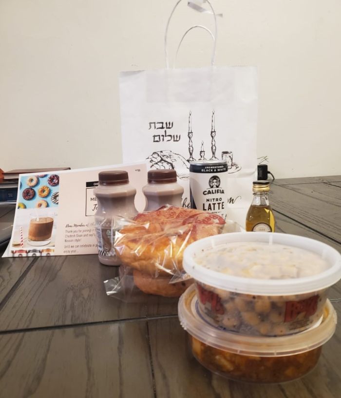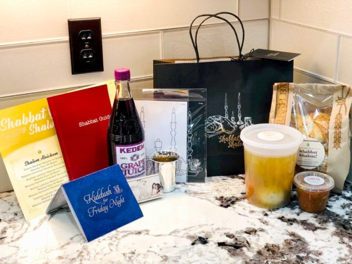 - Black bags and boxes with silver foil printed with Shabbat Shalom in both hebrew and english