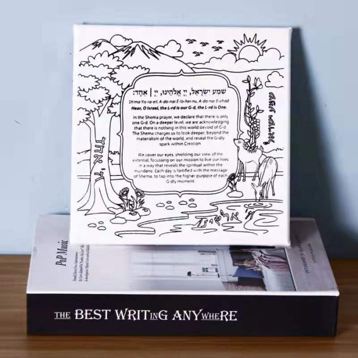 Shema Canvas Art 8x8 is the perfect addition to any room in your home. The modern and creative design will make a statement and is the perfect way to show your Jewish pride. The art is made with a high-quality canvas and wooden backing, making it a unique and a great addition to your collection. It is also making for a great Hebrew school graduation gift or a gift for any other special occasion.