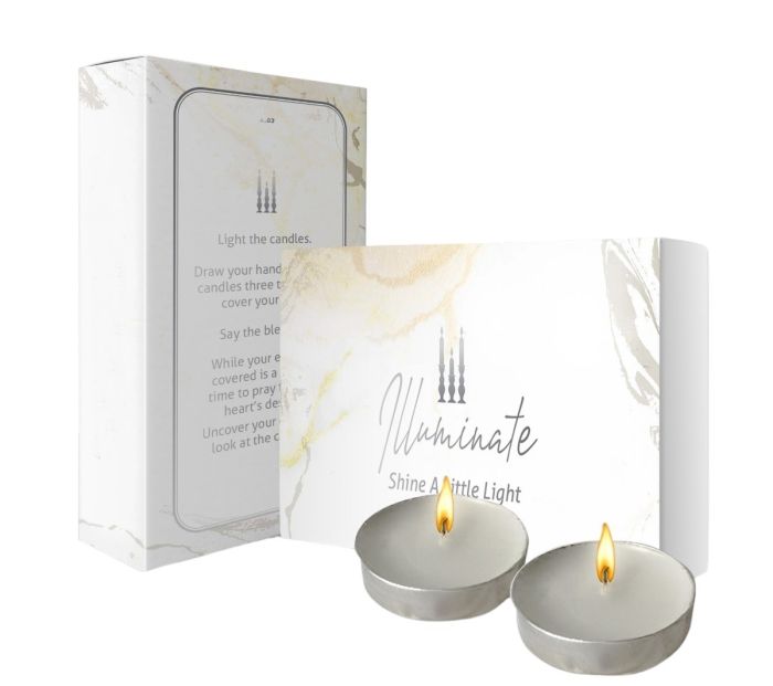 Bring the warmth and light of Shabbos wherever you go with this compact and beautifully designed Silver Illuminating Neshek Candlelighting Kit. Created with elegance and intention, each kit includes two tealights neatly nestled in a sleek, marble-inspired silver-white box. It’s the perfect introduction to the mitzvah of lighting Shabbat candles – whether for a mitzvah campaign, a meaningful favor, or a personal moment of connection.