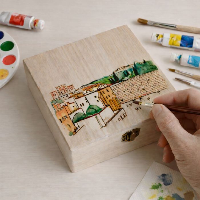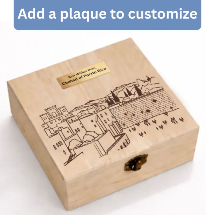 Small Wooden Purim Tea Box – Jerusalem & Western Wall Design