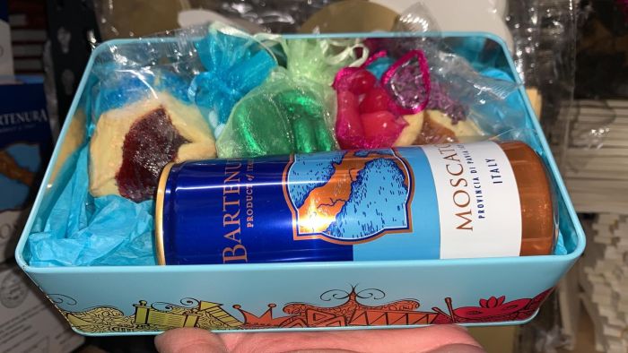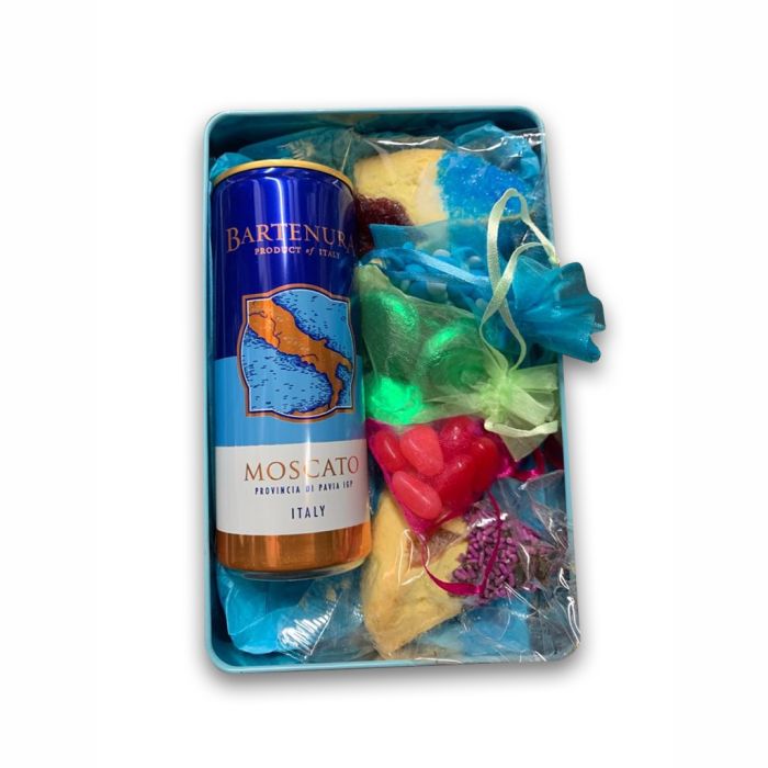 Smaller FILLED Happy Purim Shaloch Manos Tin Drink, Hamantashen, Chocolate, Mints, Jelly Beans - Price includes shipped, ship to individual adresses