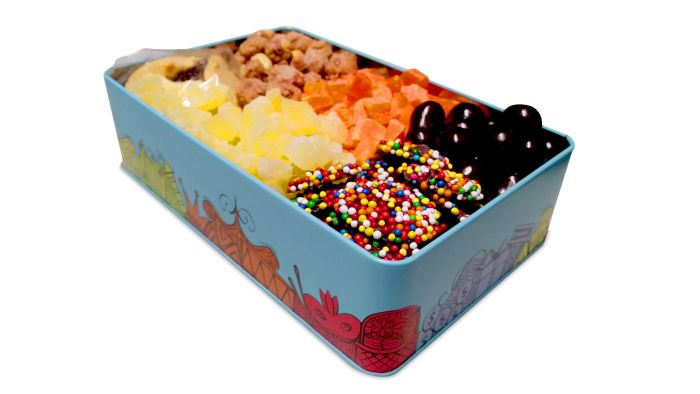 Smaller FILLED Happy Purim Shaloch Manos Tin