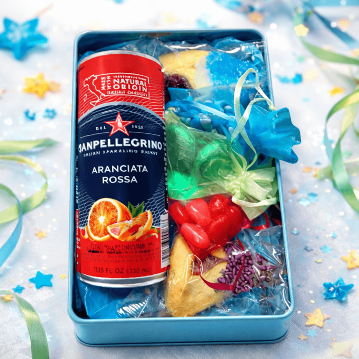 » Size: 7.4" x 4.7" x 2.1"Celebrate Purim in style with our Happy Purim Shalach Manos Tin Containers!
