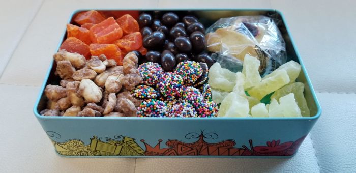 Empty SMALLER Happy Purim Shaloch Manos Tin 7.4" x 4.8" x 2.16"