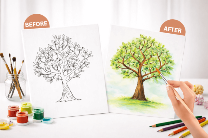 - Design:Â Elegant black and white tree, perfect for coloring, painting, or leaving as-is for a minimalist aesthetic.