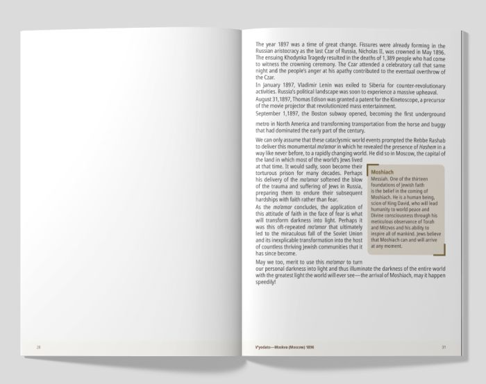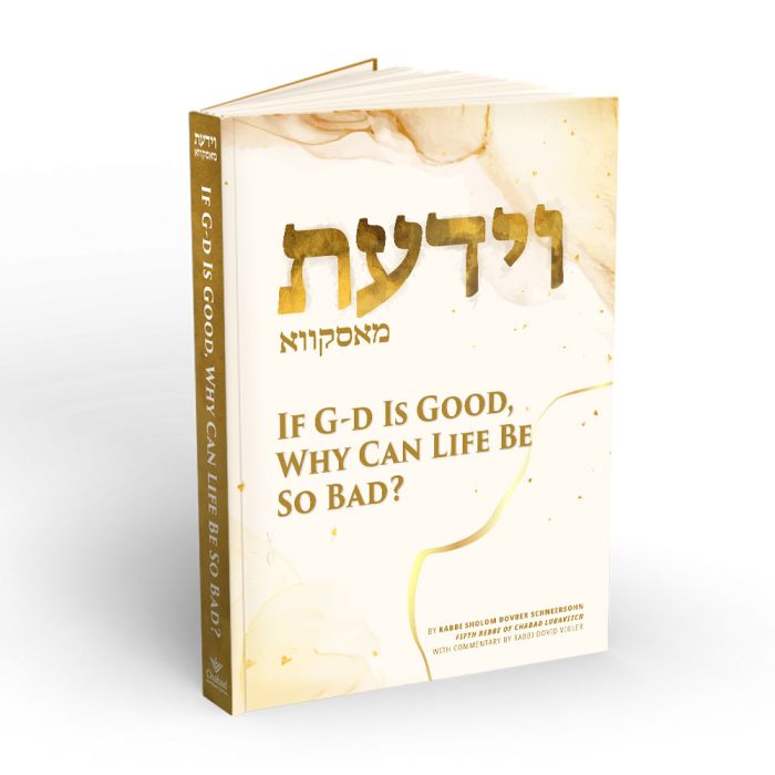 Based on an 1896 Manuscript by The Fifth Rebbe of Chabad, Rabbi Sholom Dovber Schneersohn, This Book “V’yodato Moskva—If G-d Is Good Why Can Life Be So Bad?” Sheds Light on One of Life’s Greatest Enigmas—Human Suffering. Through a Meticulous, Didactic Analysis, The Ma’amar Presents a Highly Sophisticated Approach to our Understanding Of G-d, How He Engages With us Human Beings and Why He Allows us to Struggle. It Opens our Eyes to Uncover The Dazzling Light and Extraordinary Opportunity That Lies Behind our Sorrows.